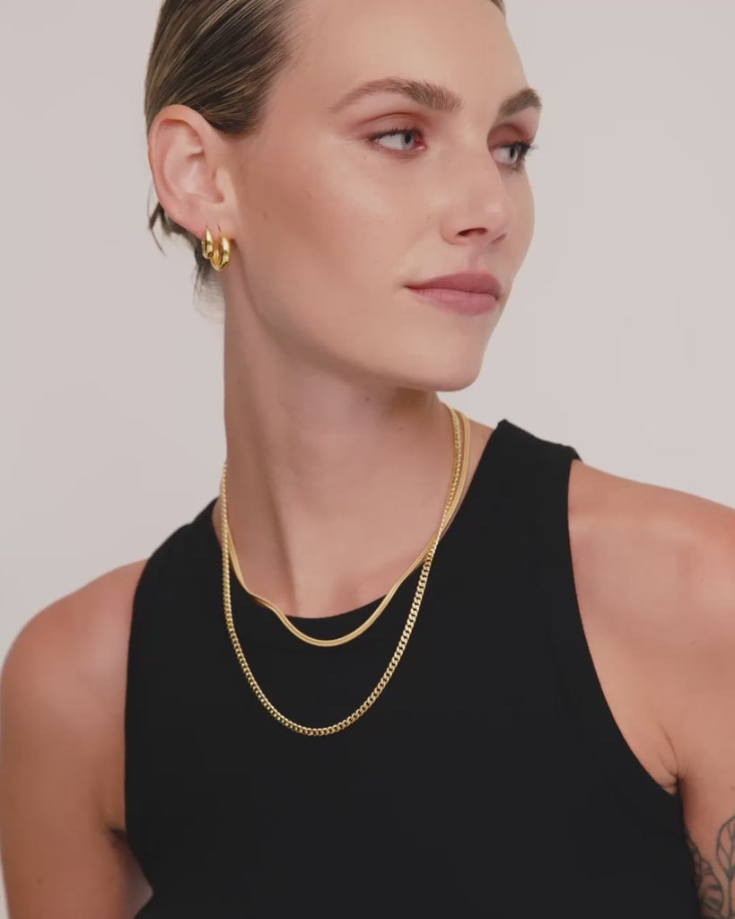 Dome Hoops Large er et par chunky og tidsløse øredobber til enhver smykke samling. De ser flotte ut alene, men deres allsidige design gjør dem perfekte for å kombinere med andre øredobber.